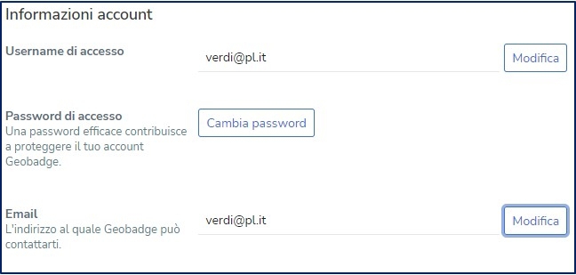 Per modificare l’indirizzo email utilizzato da Geobadge per inviare le notifiche sono necessari i seguenti step.